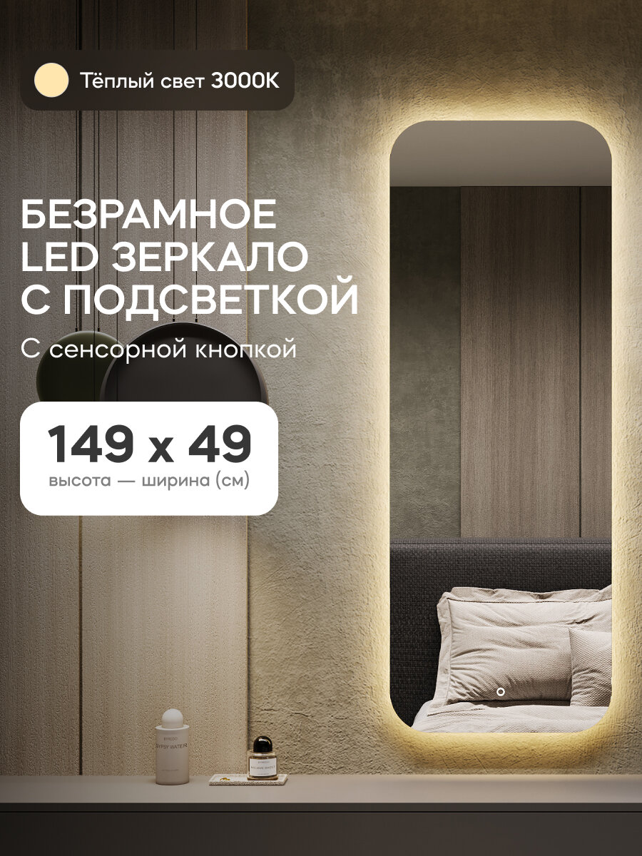10 цен на GENGLASS Зеркало настенное с тёплой подсветкой 150x50 см KUVINO NF LED M, с сенсором