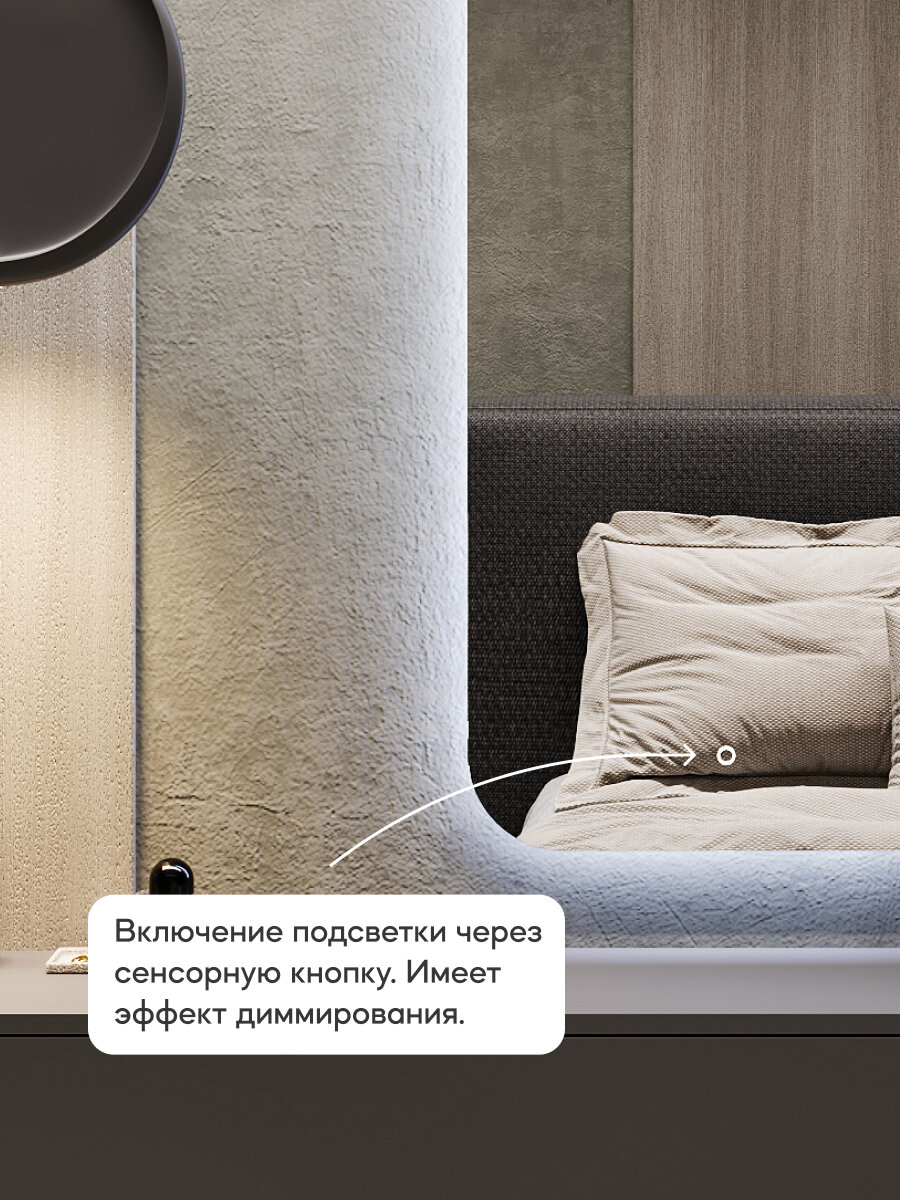 Зеркало настенное для ванной КерамаМане 70*100 см с холодной подсветкой 6000 К с сенсорной кнопкой
