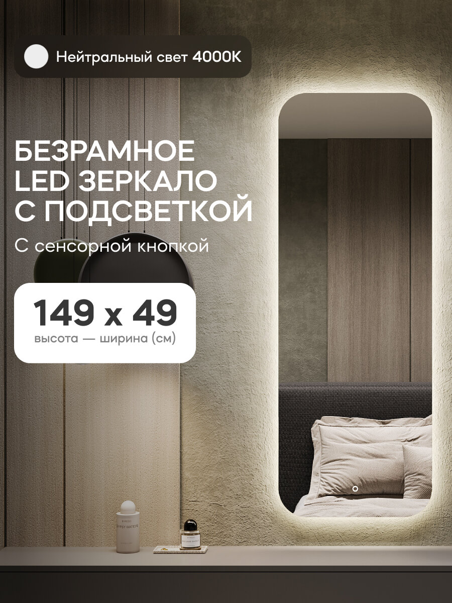 10 цен на GENGLASS Зеркало настенное с нейтральной подсветкой 150x50 см KUVINO NF LED M, с сенсором