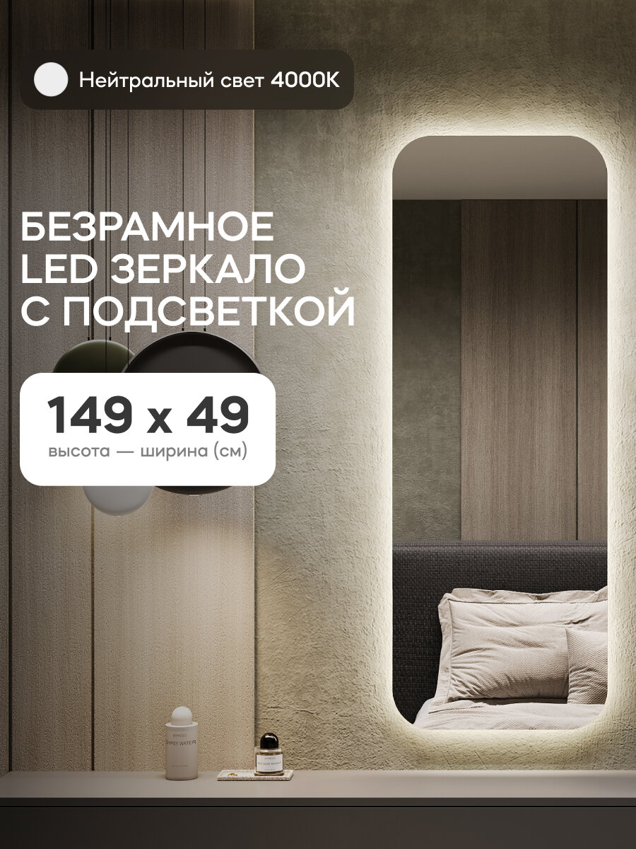 10 цен на GENGLASS Зеркало настенное с нейтральной подсветкой 150x50 см KUVINO NF LED M