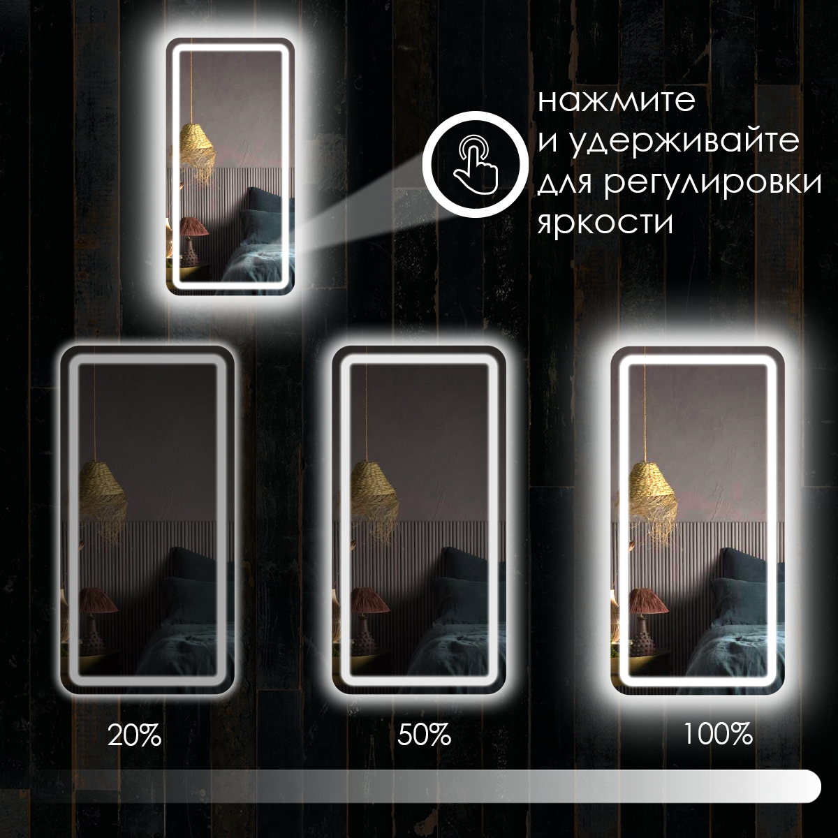 Зеркало настенное для ванной КерамаМане 70*100 см с холодной подсветкой 6000 К с сенсорной кнопкой