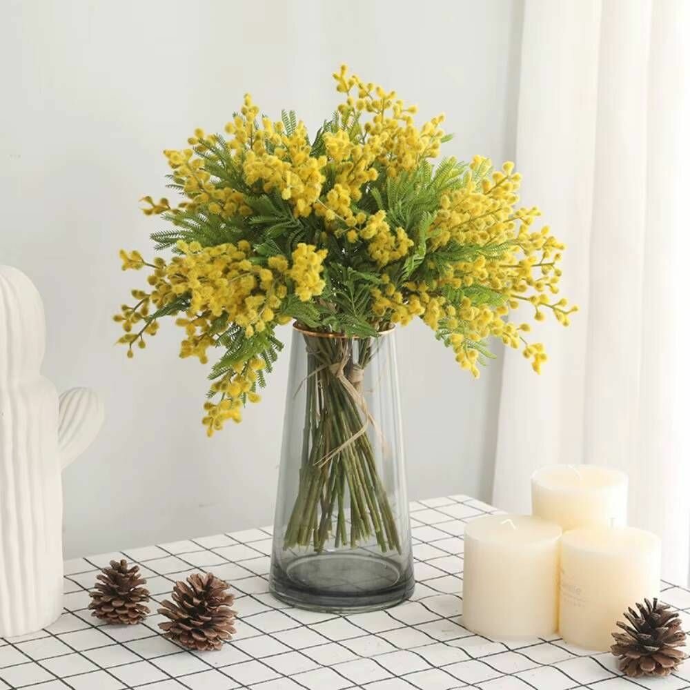 10 цен на Искусственные цветы Мимоза желтая 30 см 5 букетов по 7 веток