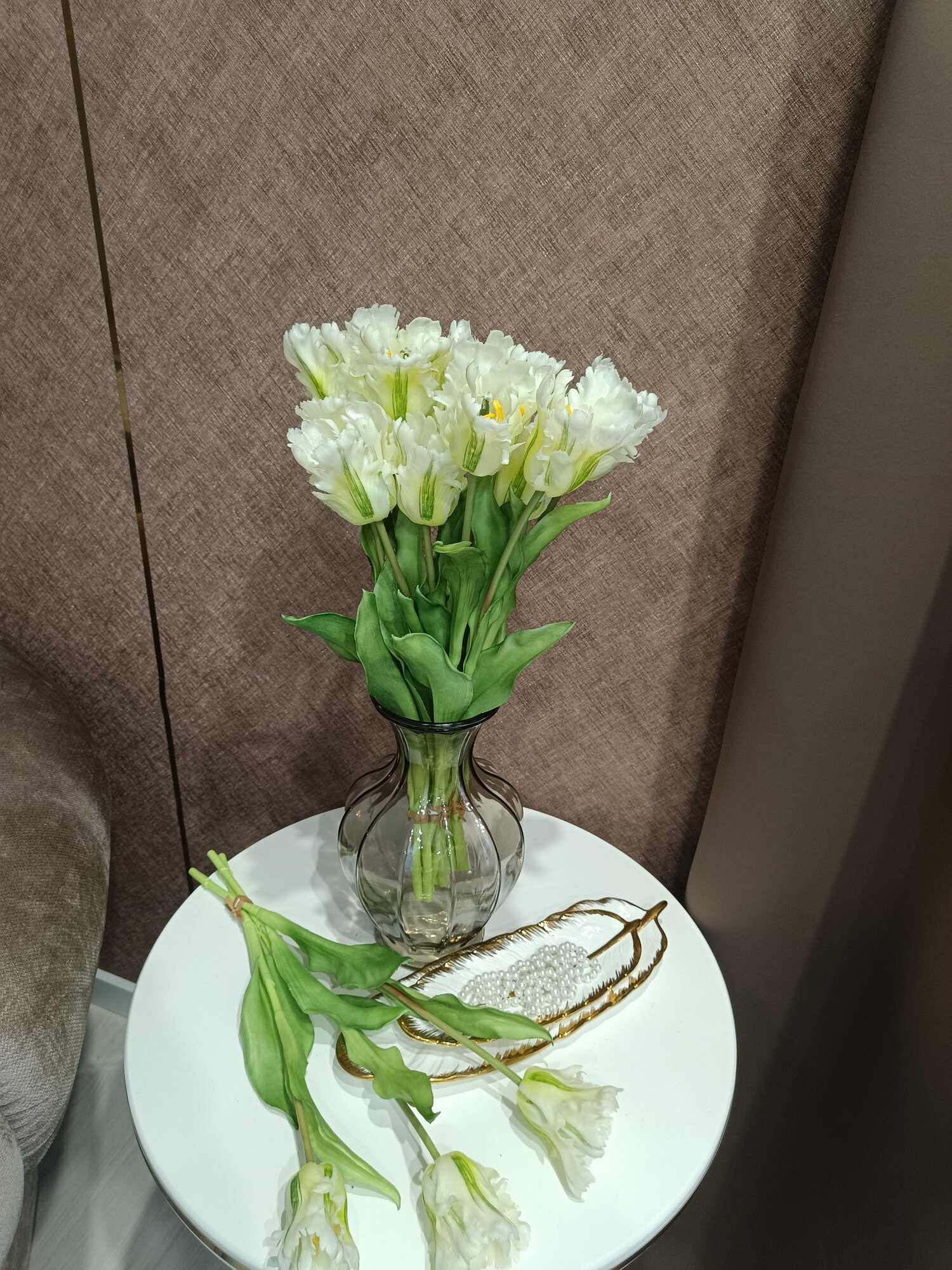 Отзывы на Тюльпаны искусственные из силикона Flo-boutique, букет из 3 цветков, высота 51 см, белые пестрые