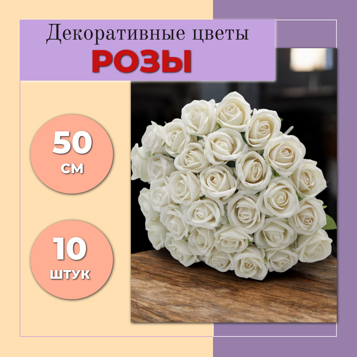 10 цен на Цветы Розы (CV24) декоративные, искусственные, интерьерные 10 штук, 50см, белый