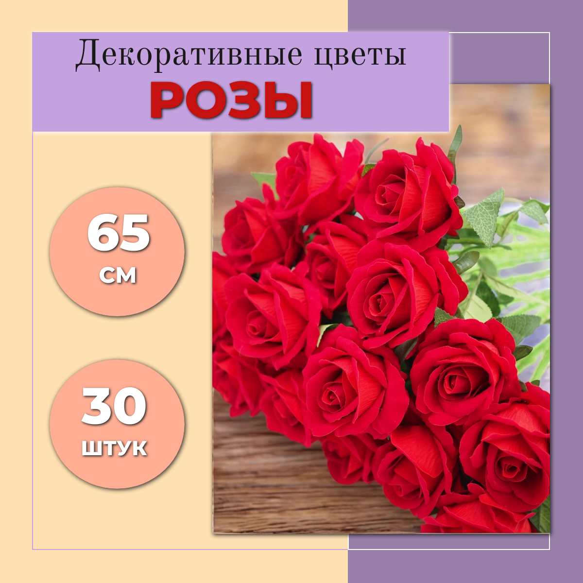 Цветы Розы (CV23) декоративные, искусственные, интерьерные 30 штук, 65см, красный информация: