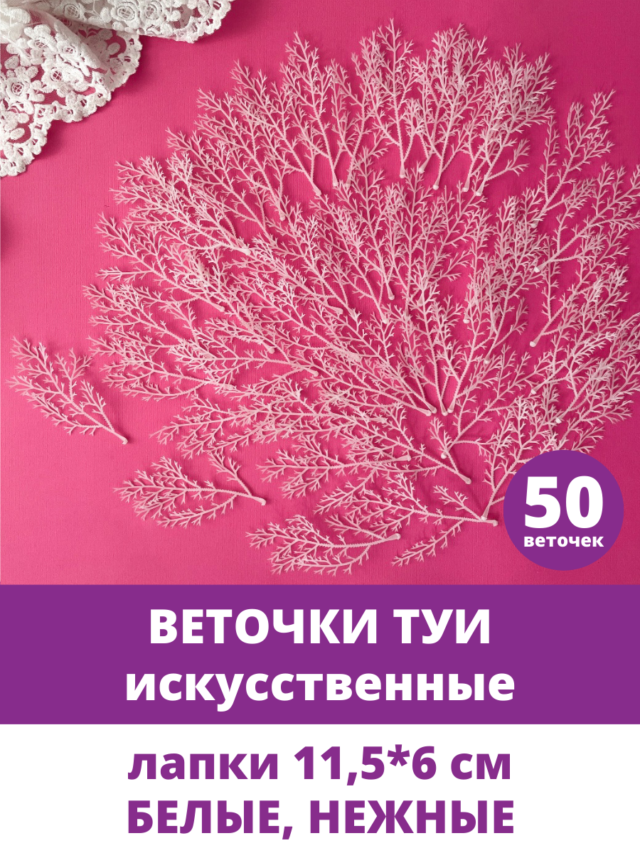 Набор травяных веточек, Туя, искусственная зелень, Белая, 11,5*6 см, набор 50 штук. информация: