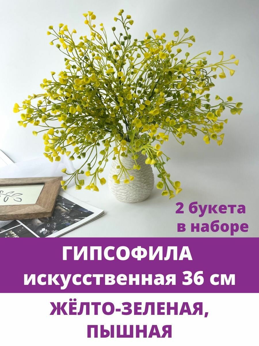 10 цен на Гипсофила искусственная 36 см, Желто-зеленая, Декоративные цветы, 2 букета в наборе.