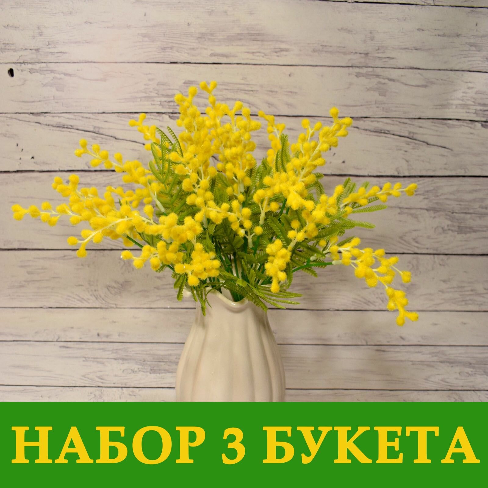 10 цен на Искусственные цветы Мимоза декоративная, 35 см 7 веточек, набор 3 букета.