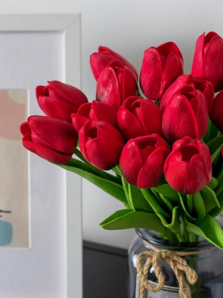 Отзывы на Искусственные цветы Тюльпаны из силикона латекса для декора 10шт красно-черные 33 см