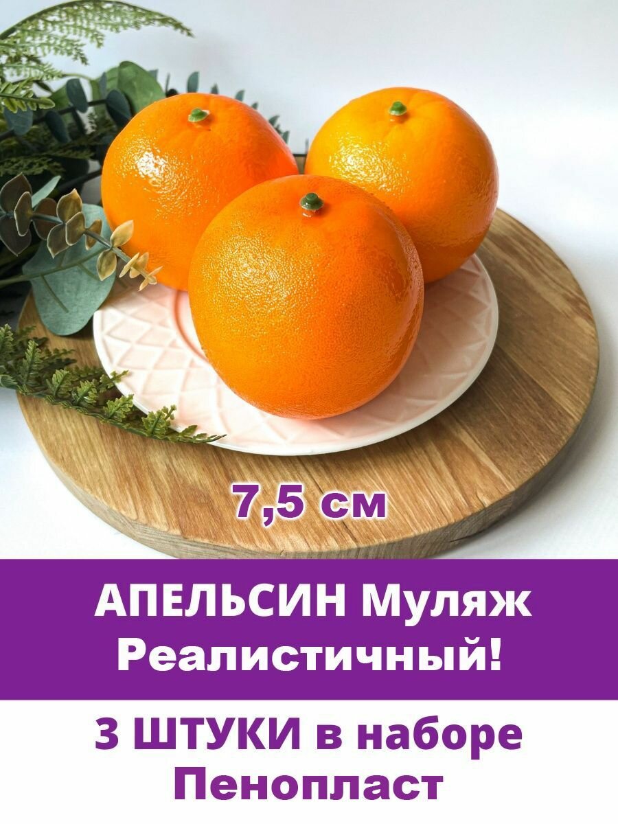 Апельсины крупные, Фрукты декоративные, муляжи, 7,5 см, 3 штуки информация: