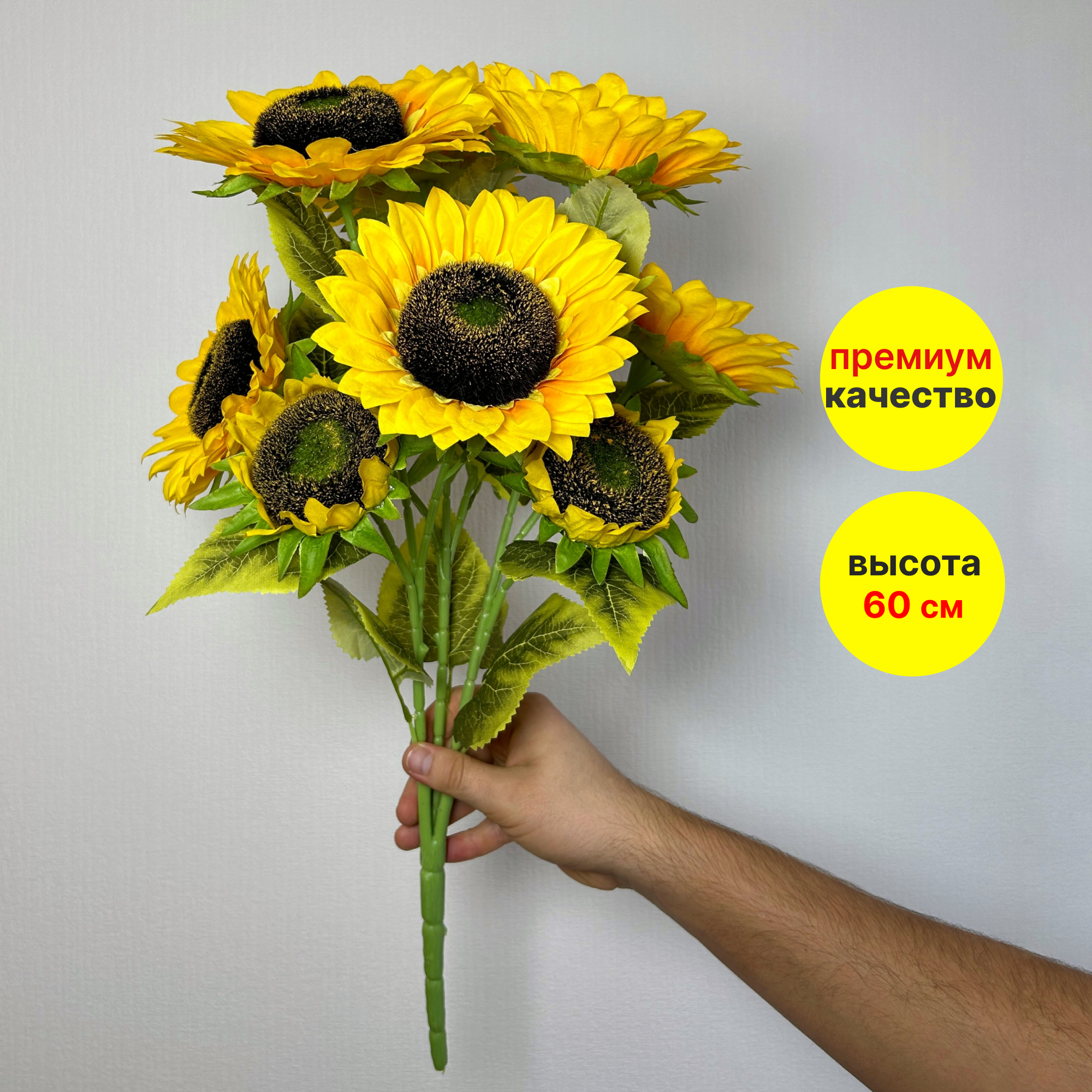 Отзывы на Искусственные цветы для декора, букет желтых подсолнухов 60см, 9шт