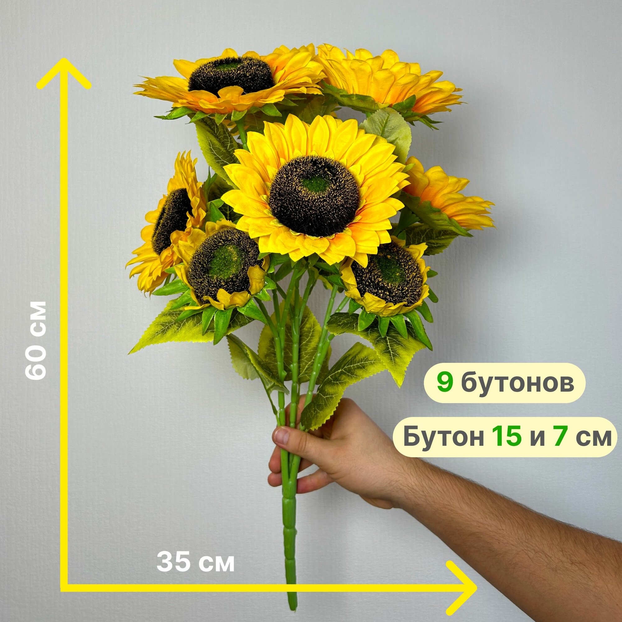 Искусственные цветы для декора, букет желтых подсолнухов 60см, 9шт информация: