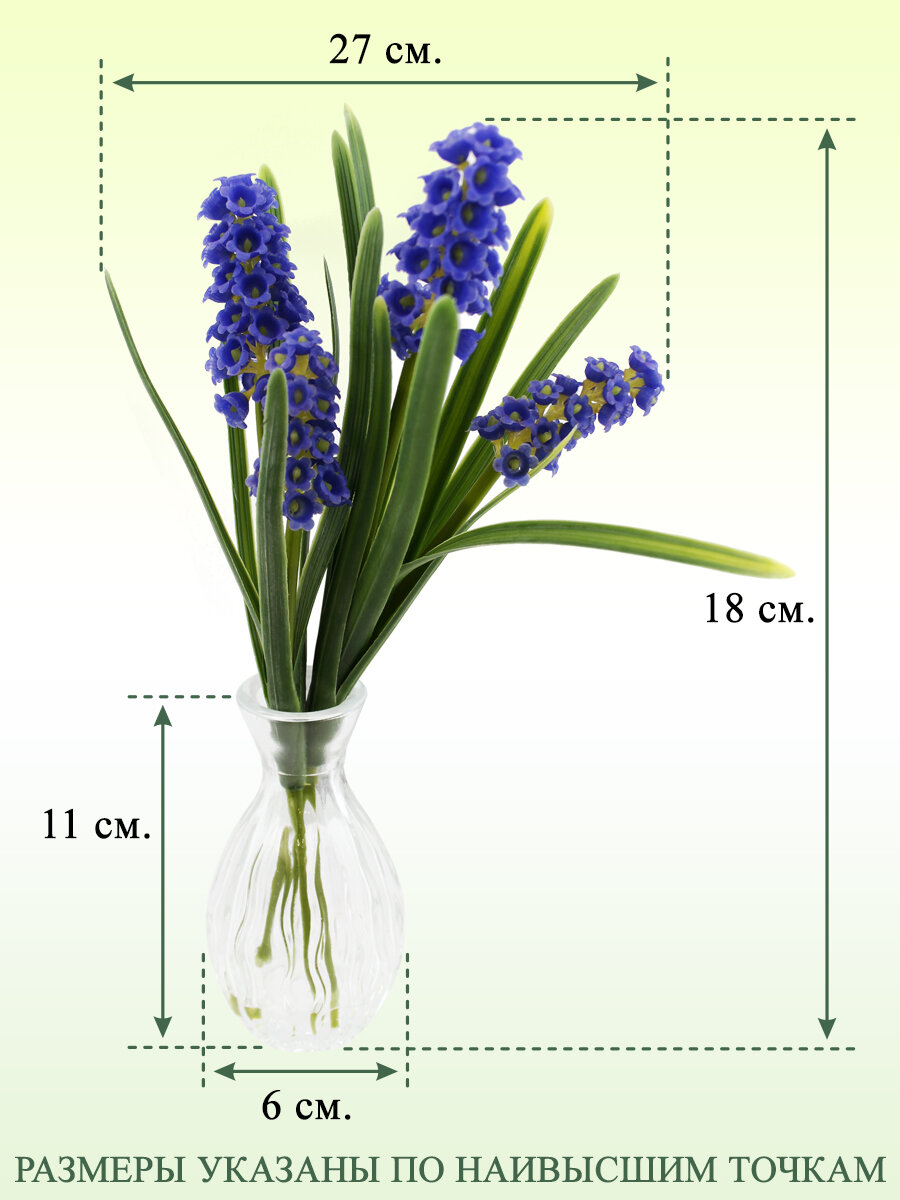 Искусственный цветок Гиацинтоидес НатаМ декоративный в вазе, синий информация: