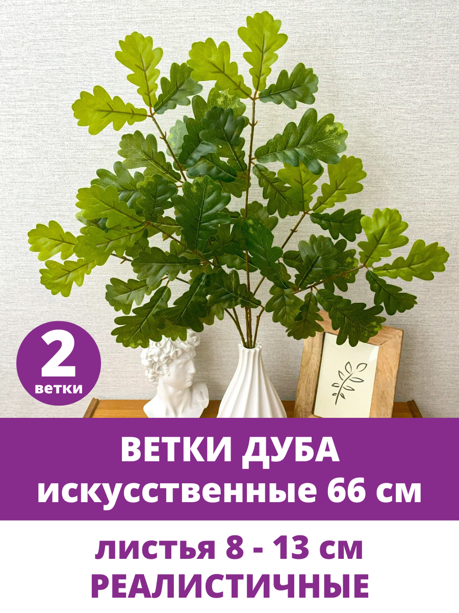 10 цен на Дуб зеленые листья на ветке, искусственные, для декора, ветка 66 см, набор 2 шт
