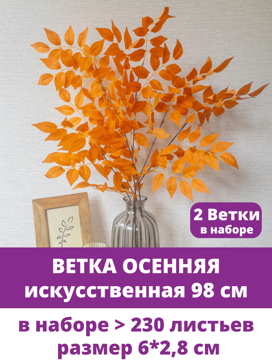 Отзывы на Ветки осенние для декора, искусственные листья, цвет Оранжевый, ветка 98 см, в наборе 2 шт