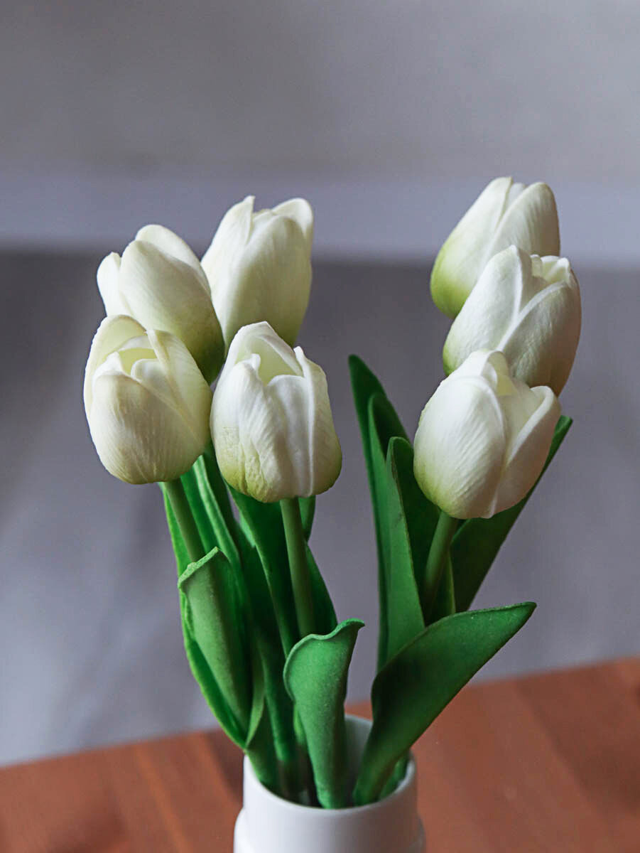 10 цен на Тюльпаны 7 шт Букет 32,5 см бело-зеленый Цветок искусственный из латекса