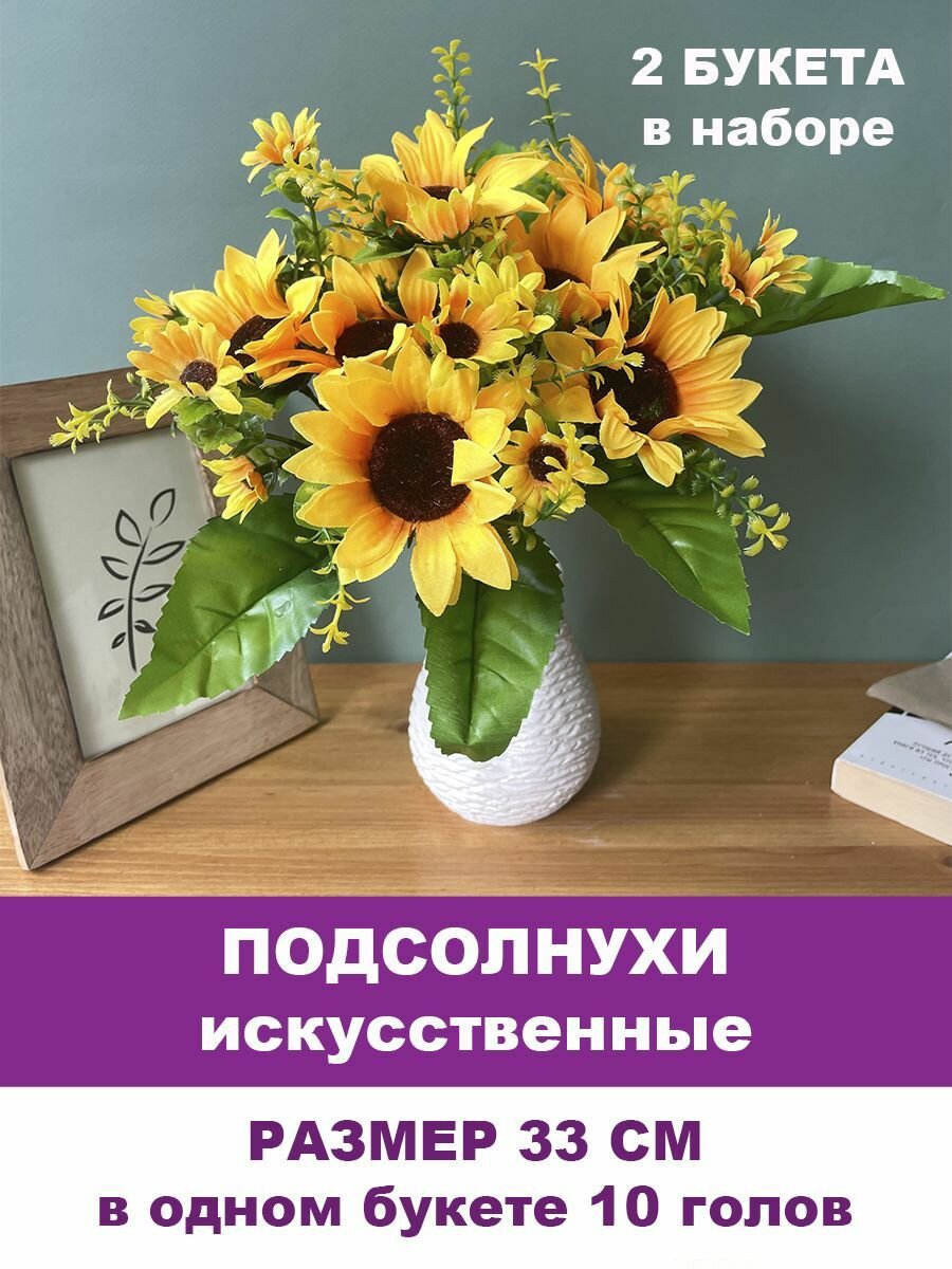 Подсолнухи искусственные 33 см, 10 голов в одном букете, набор 2 букета информация: