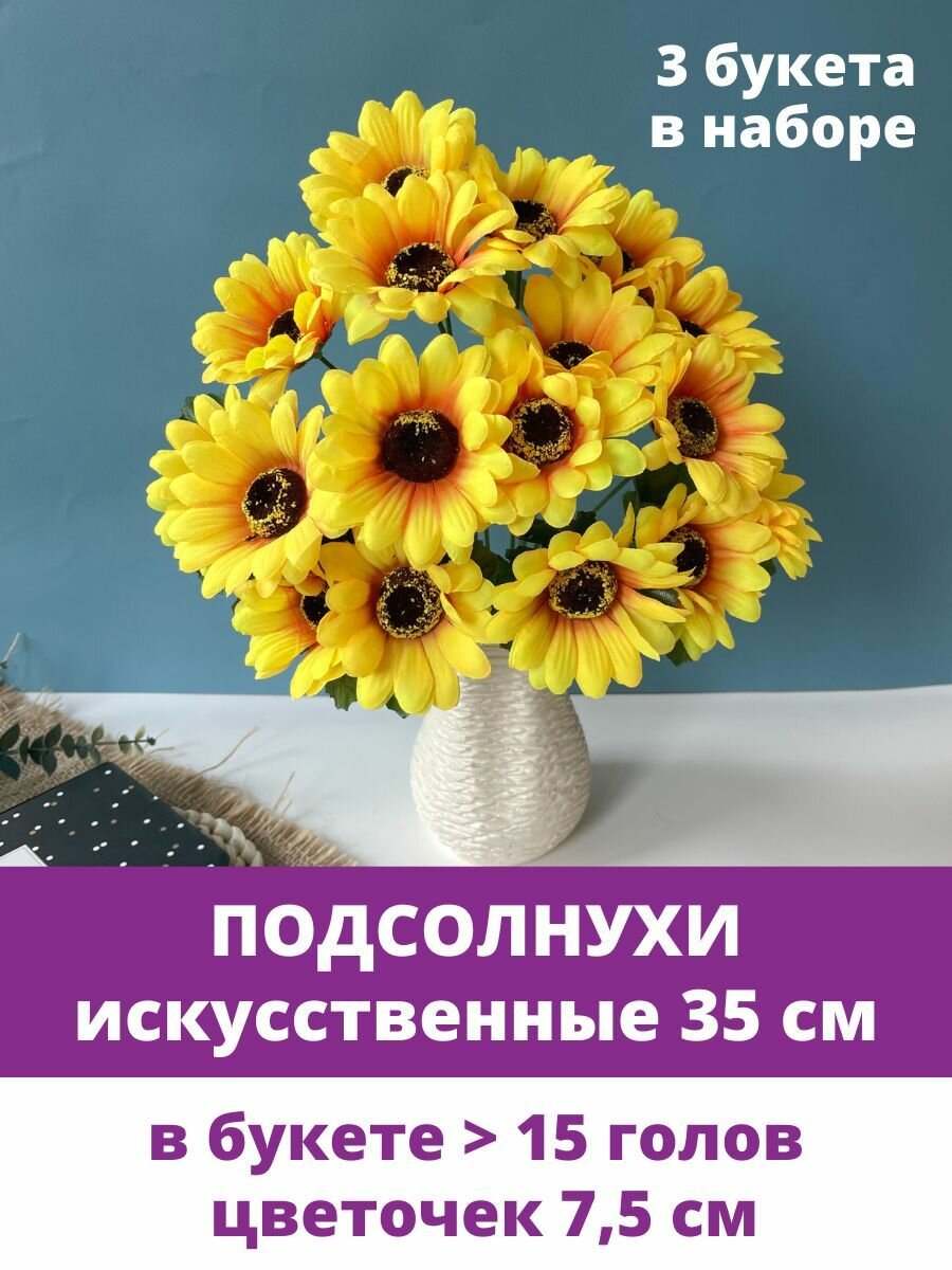 Подсолнухи искусственные, букет 6 голов, 36 см, набор 3 букета информация: