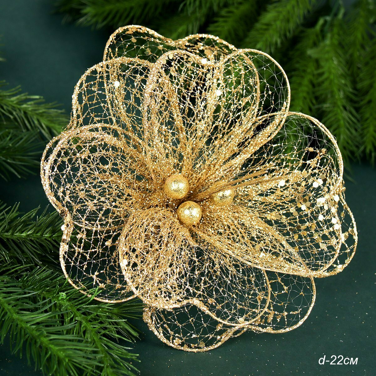 Цветок декоративный 22 см Пуансеттия - 3 штуки / золото информация: