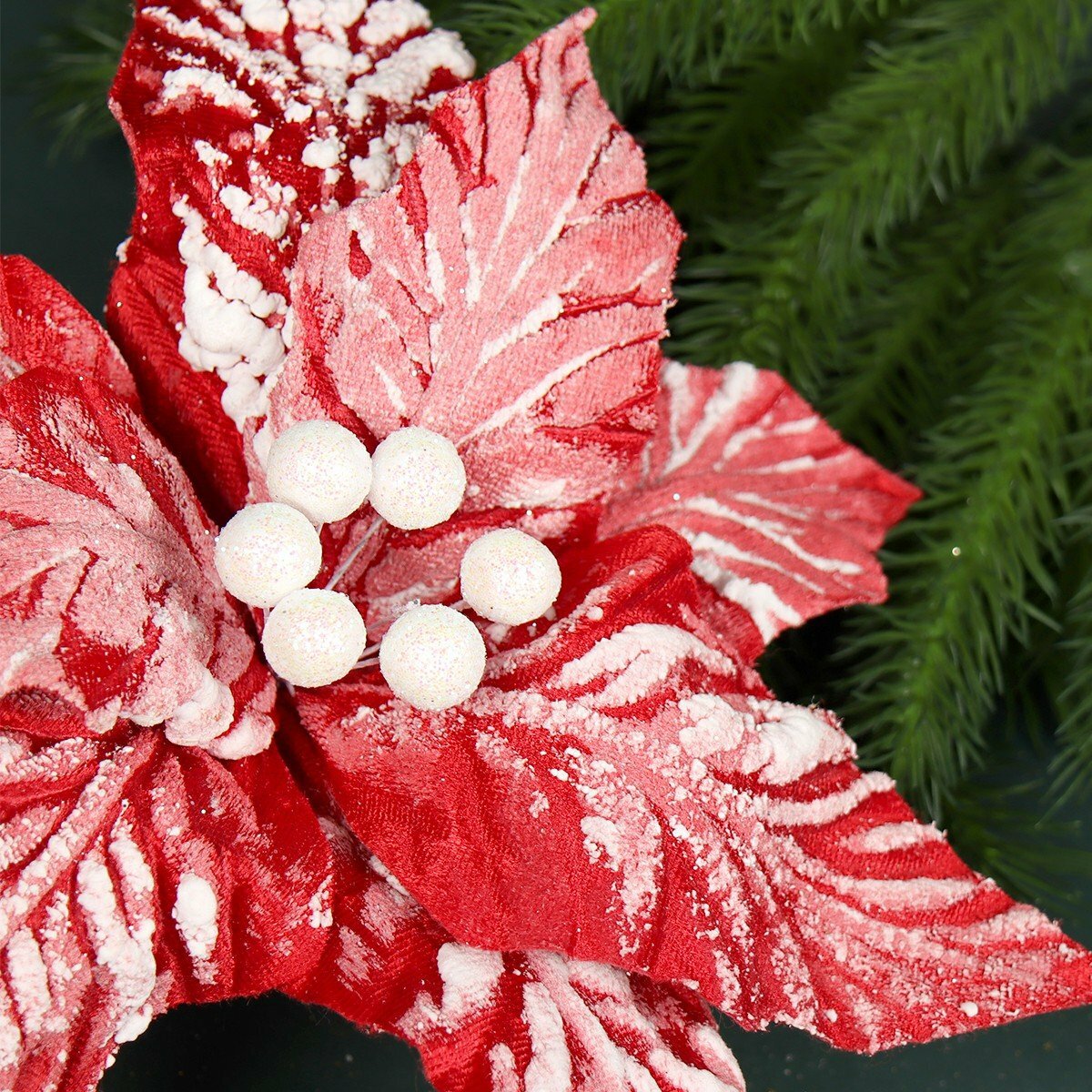 Цветок декоративный 26 см Пуансеттия - 3 штуки / красно-белый информация: