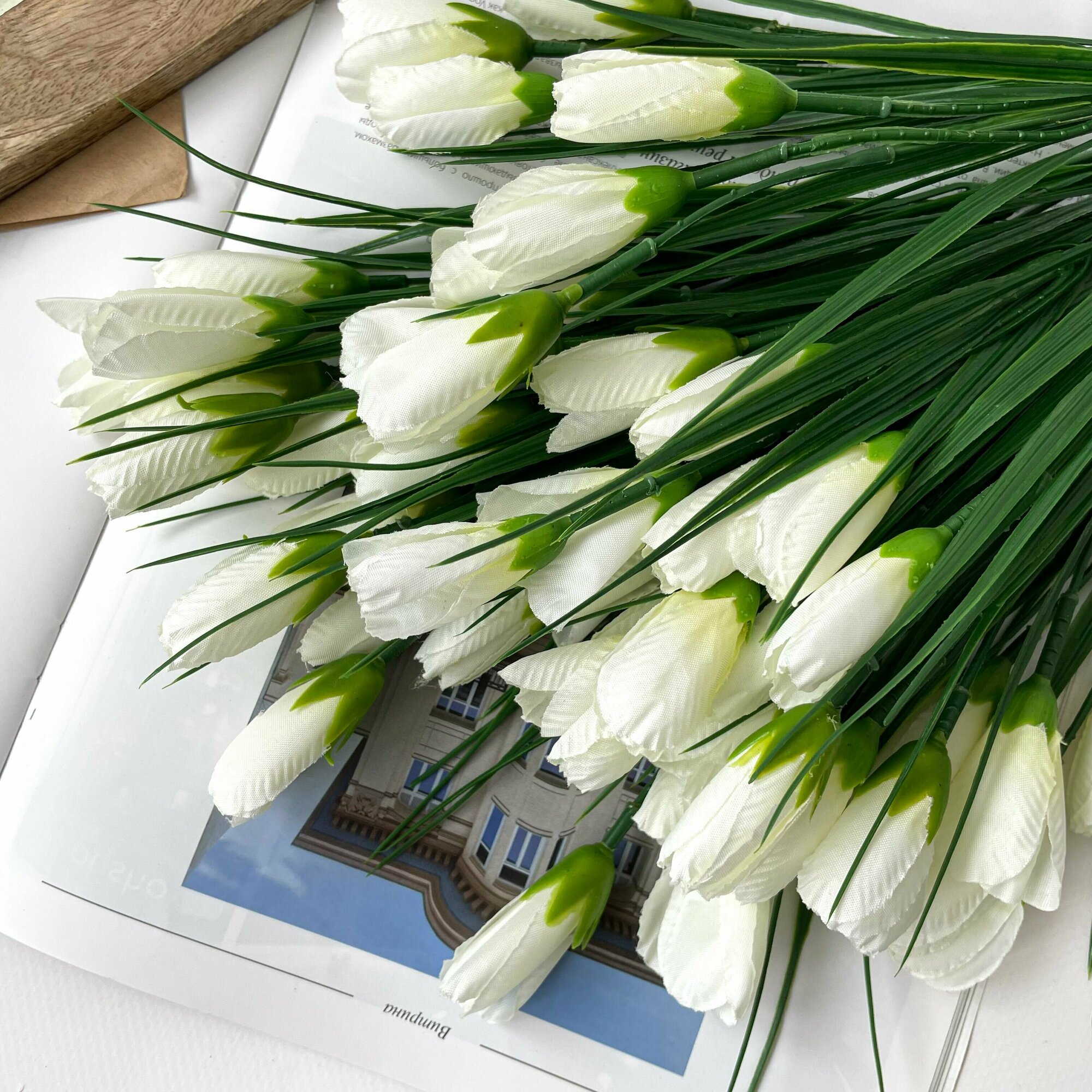 Отзывы на Крокусы-подснежники искусственные, Белые, набор 3 букета, 33 см, около 45 бутонов в наборе