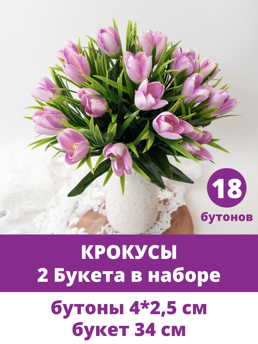 Отзывы на Крокусы-подснежники искусственные цветы для декора, Сиреневые, набор 2 букета, 34 см