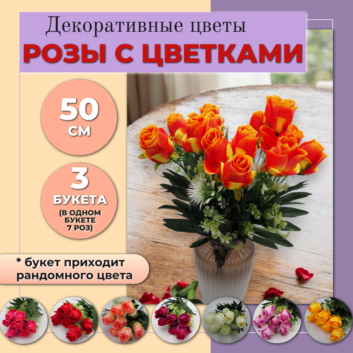 10 цен на Цветы Розы (CV7) декоративные, искусственные, интерьерные 3 букета (21шт), 50см, микс