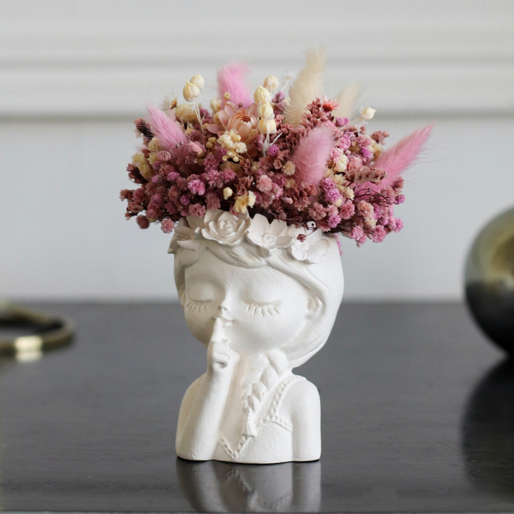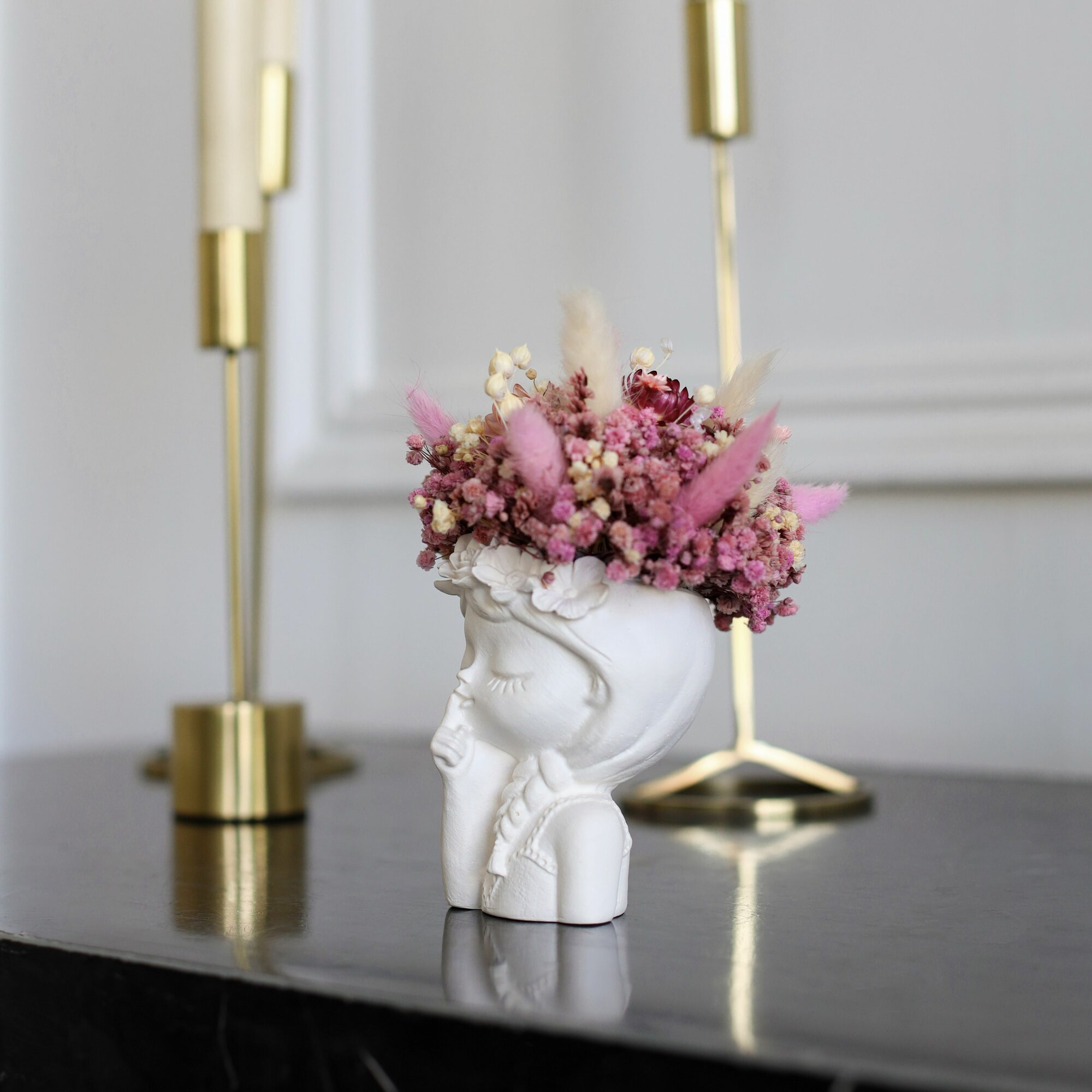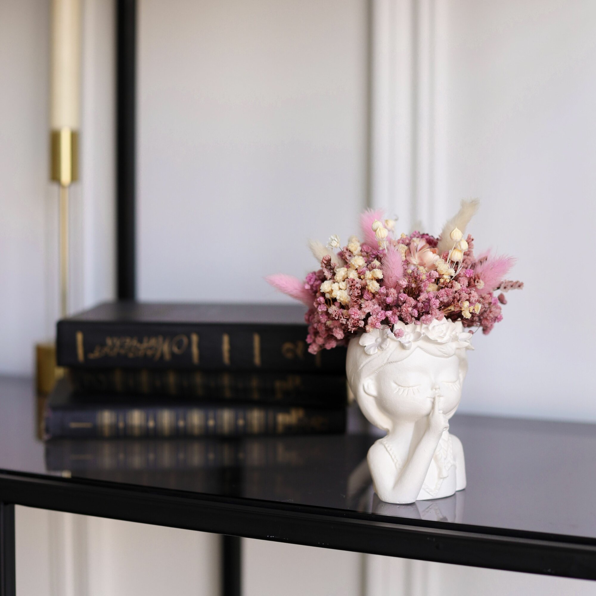 10 цен на Интерьерная композиция из сухоцветов и стабилизированных цветов в гипсовом кашпо
