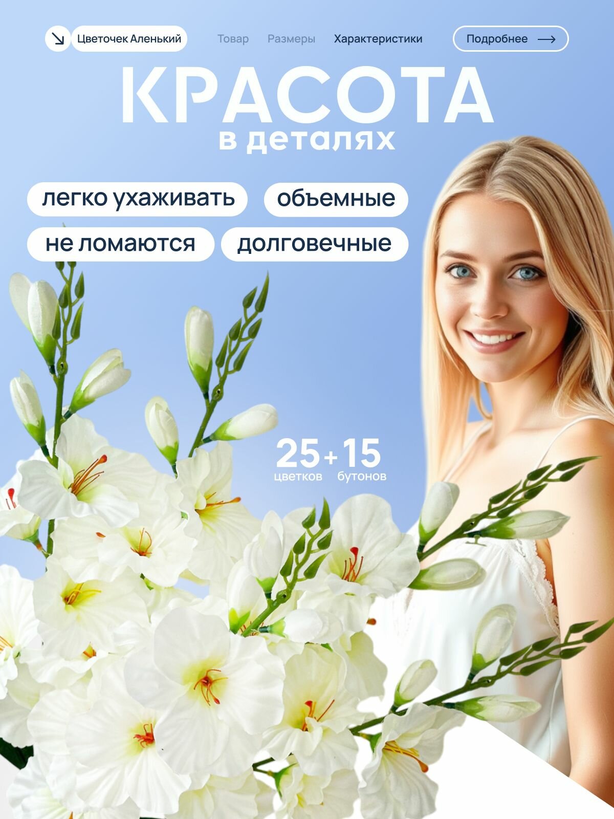 0 отзывов, средняя оценка 0. Чтобы купить «Гладиолусы искусственные цветы, белый, 70 см, 5 веток/ букет» по лучшей цене мы сканируем авито, алиэкспресс, маркет, озон, савеловский, плеер, горбушку, беру, официальные сайты и находим минимальную. Администрация не несет ответсвенность актуальность цен на Гладиолусы искусственные цветы, белый, 70 см, 5 веток/ букет, более подробно узнавайте на сайте магазина.