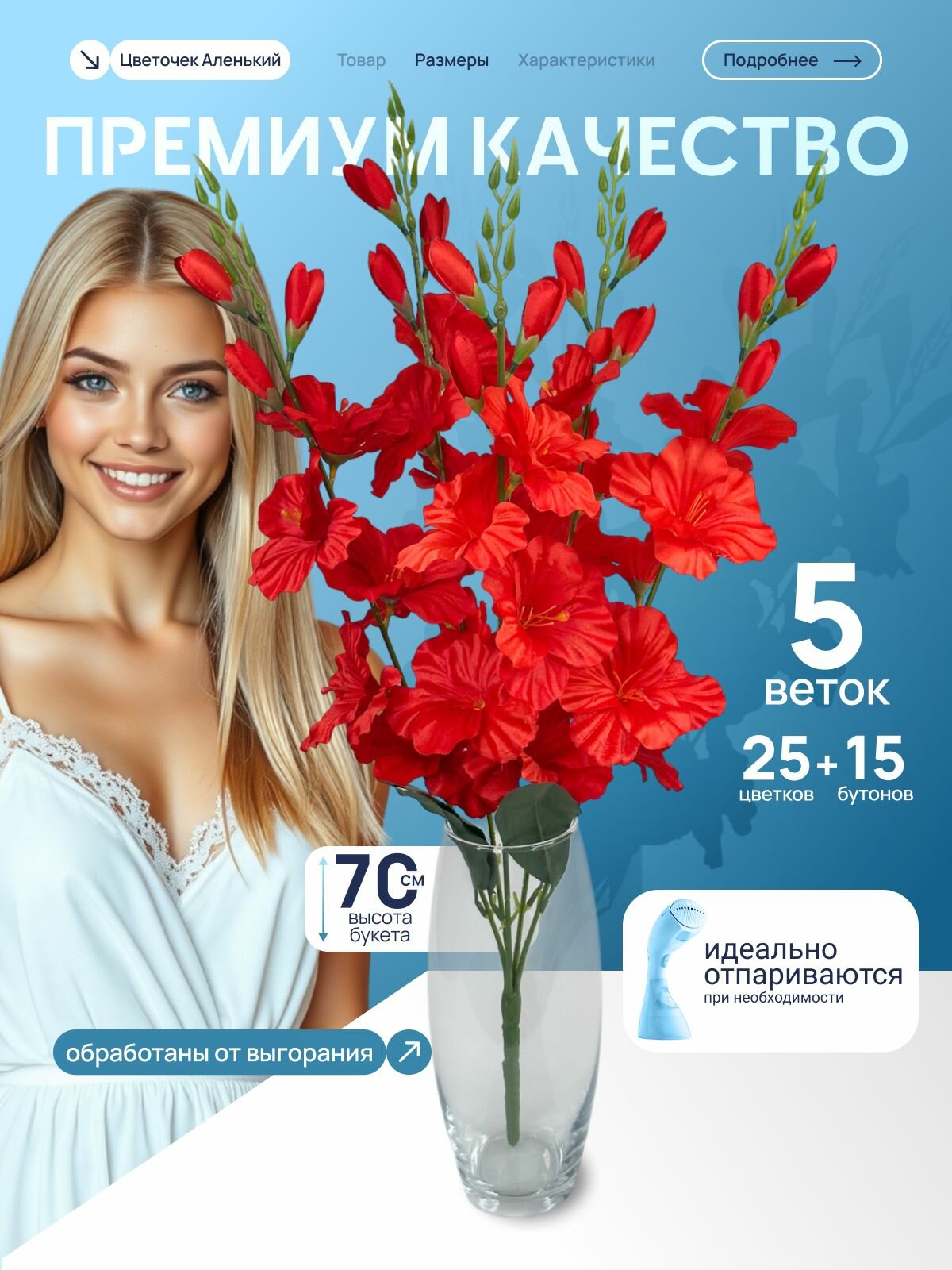 10 цен на Гладиолусы искусственные цветы, красный, 70 см, 5 веток/Букет