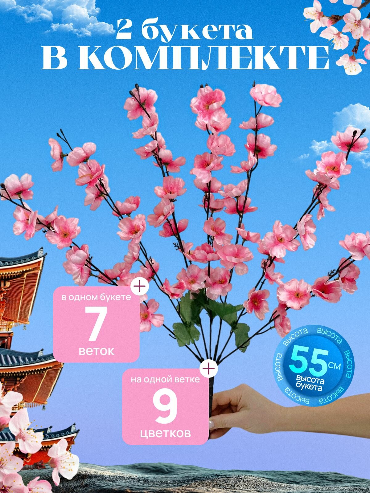 10 цен на Искусственная сакура розовая, букет - 2 шт. -55 см высота / Букет