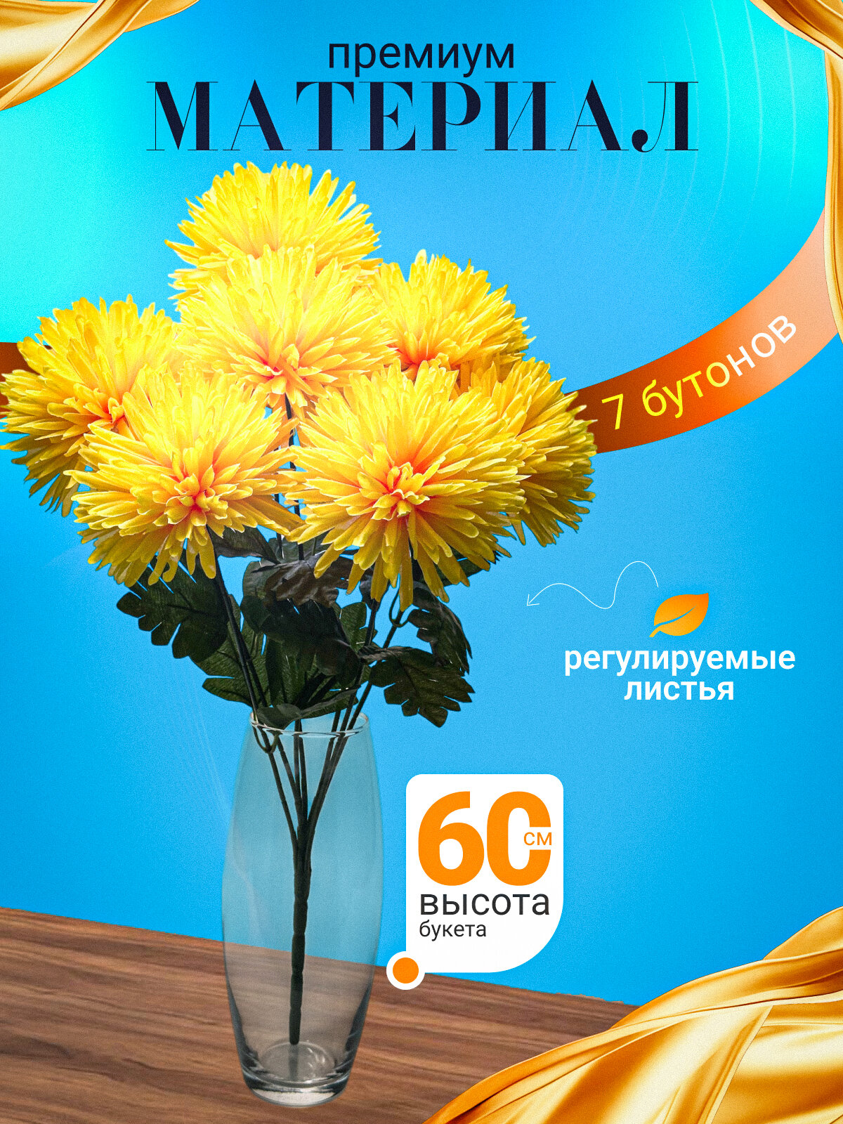 10 цен на Искусственные цветы хризантема желтая-60 см, 1 куст 7 /Букет