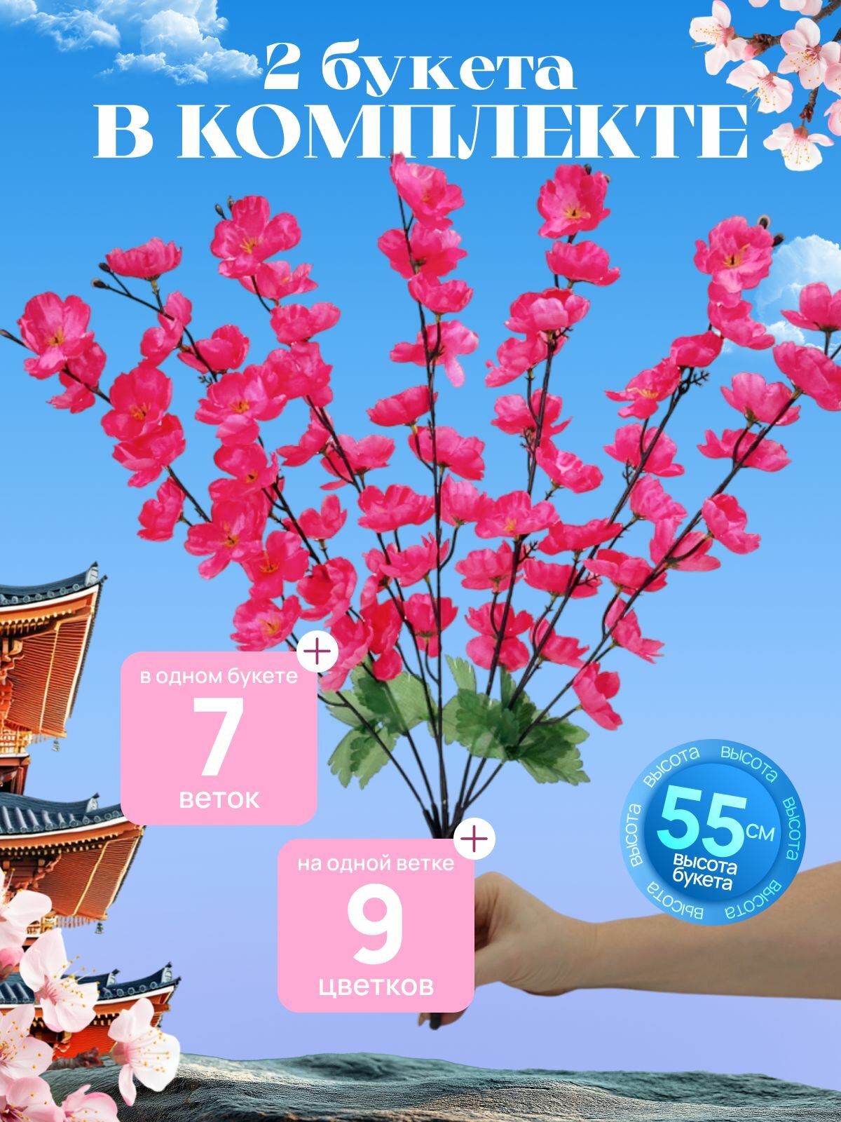 10 цен на Искусственная сакура ярко-розовая, букет - 2 шт. -55 см высота / Букет