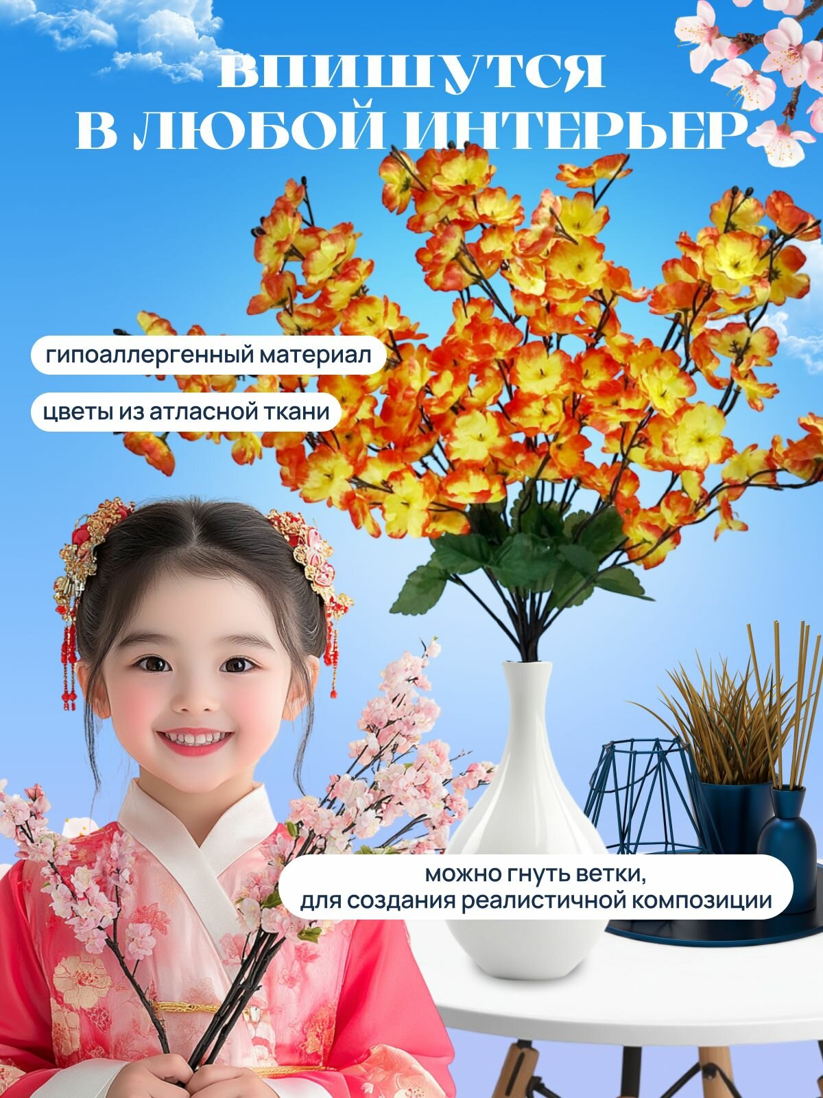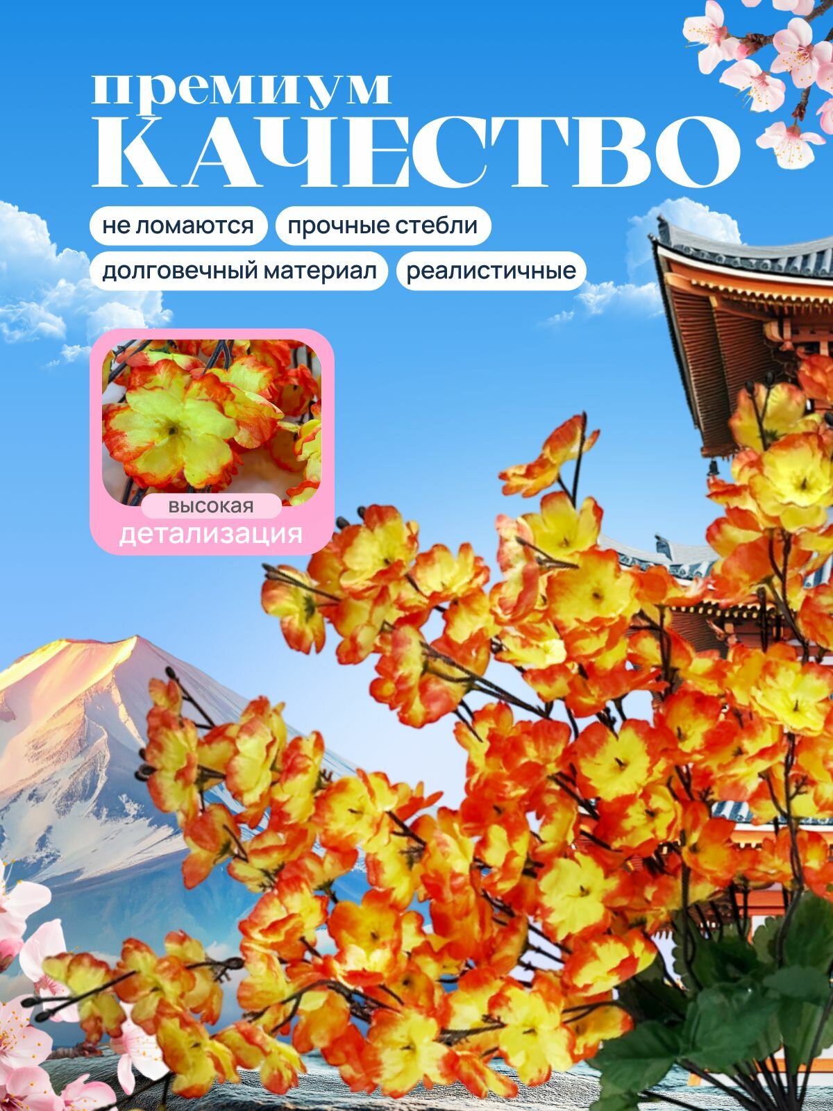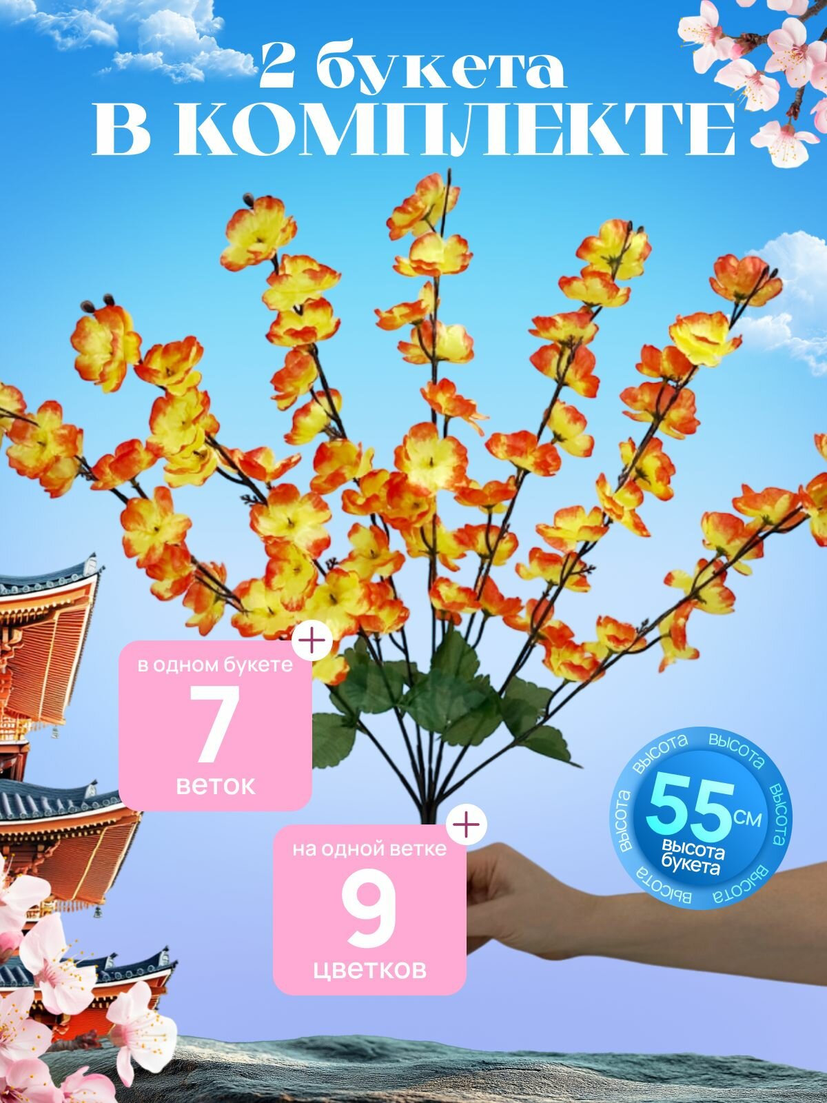 10 цен на Искусственная сакура желто-оранжевая, букет - 2 шт. -55 см высота / Букет
