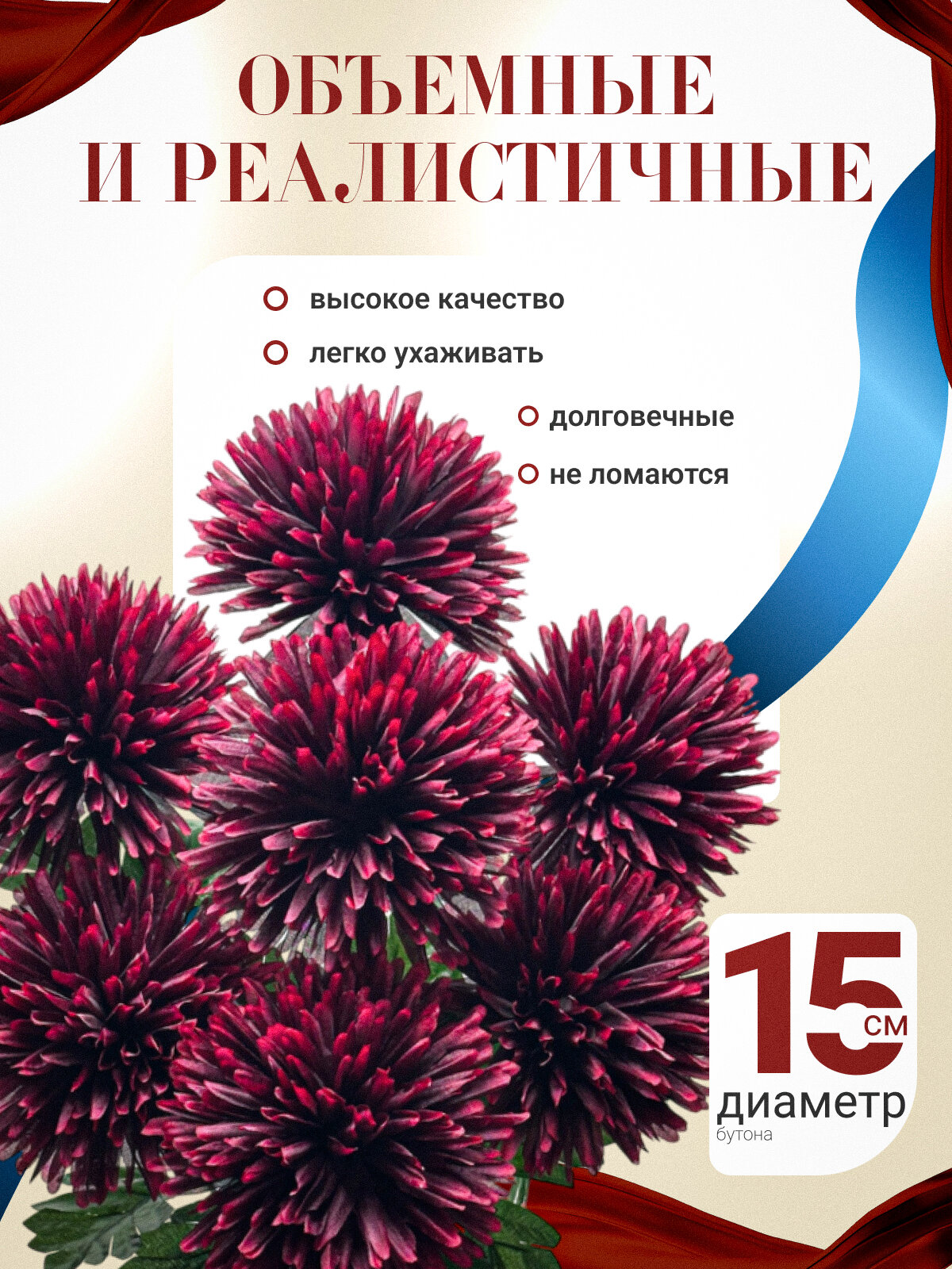 10 цен на Искусственные цветы хризантема- 60 см/бордовая, красная хризантема