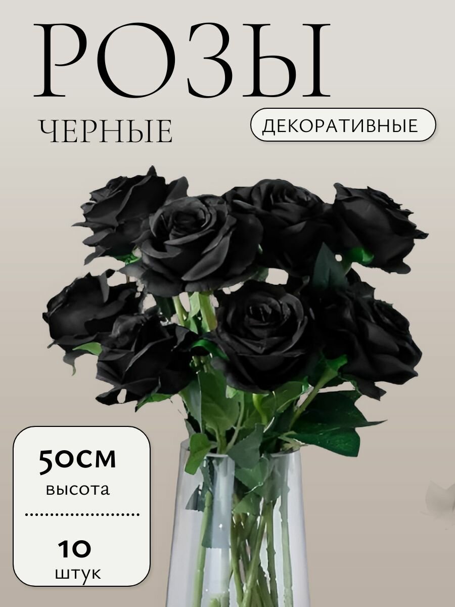 10 цен на Искусственные цветы розы черные для декора пасхи 10шт - 60 см