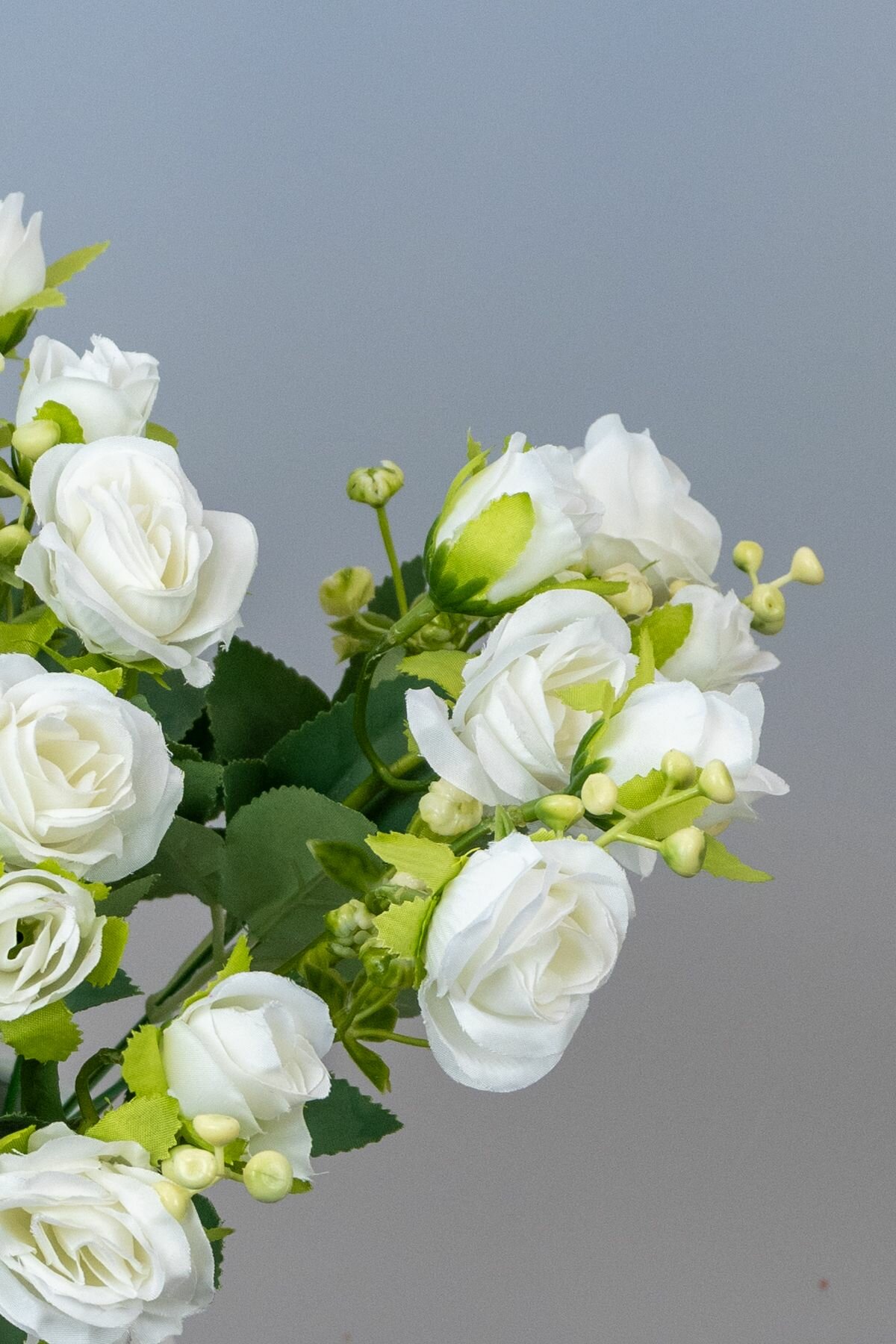 Букет искусственных цветов для интерьера декора и кашпо мини розы с зеленью 3 ветки белые информация: