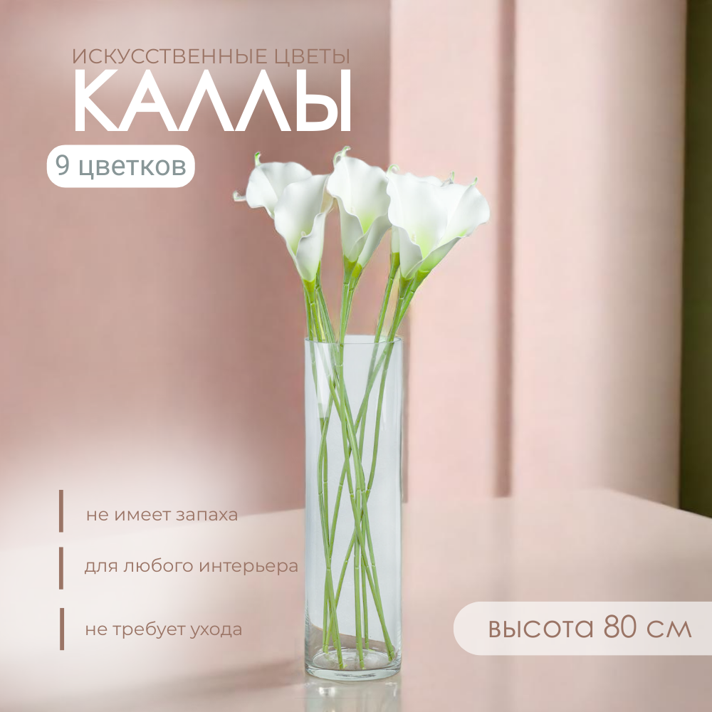 Искусственный цветок Калла для декора интерьера, на кладбище, 80 см, белый,- 9 шт информация: