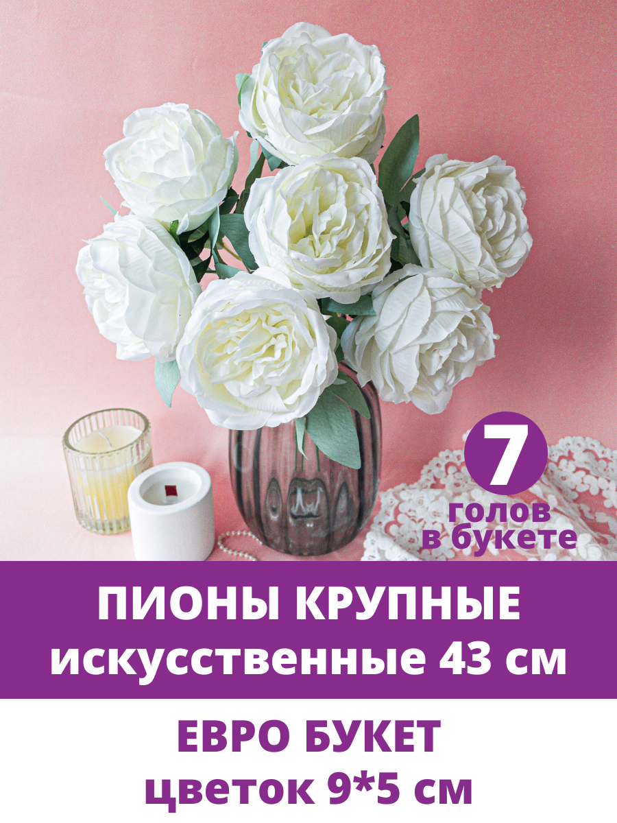 10 цен на Пионы искусственные для декора, Белые, Евро букет 43 см, 7 голов, набор 1 букет