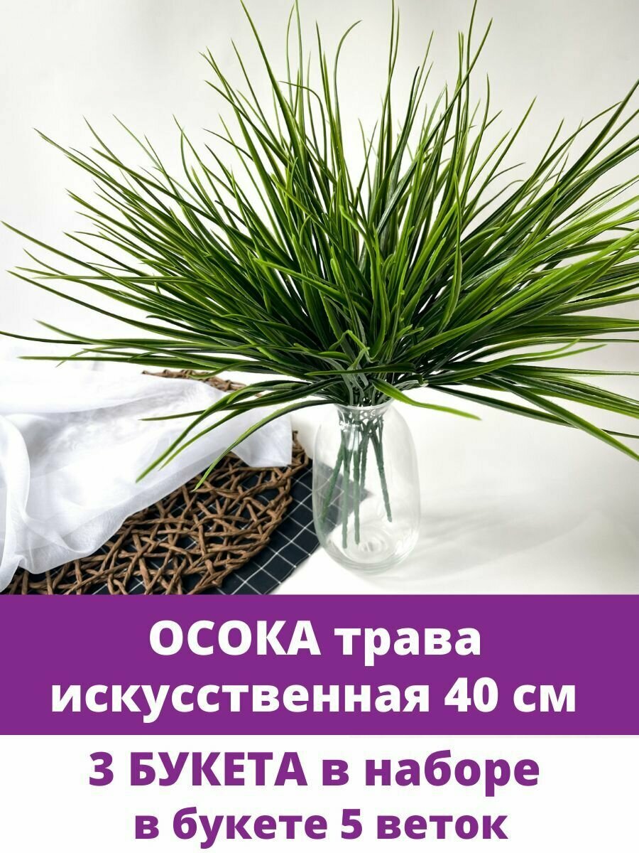 Отзывы на Осока трава зеленая, зелень искусственная, 50 см, набор 3 букета.