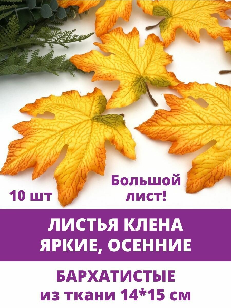 Листья клена крупные, искусственные, 14х15 см, осенние, для рукоделия и декора, 10 кленовых листочков информация: