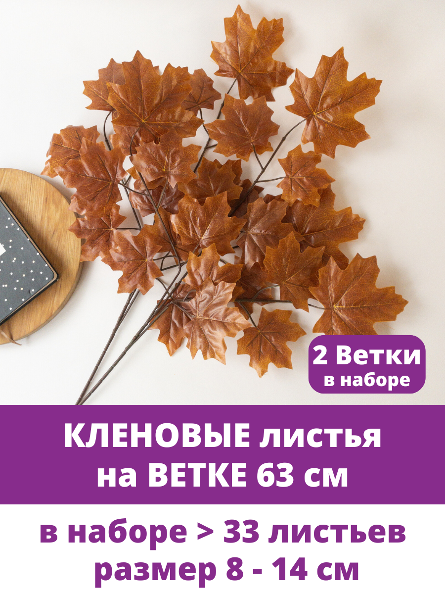 Отзывы на Кленовые листья на ветке, искусственные, Коричневые, Осенний декор, 63 см, листья 8 -14 см, 2 ветки в наборе