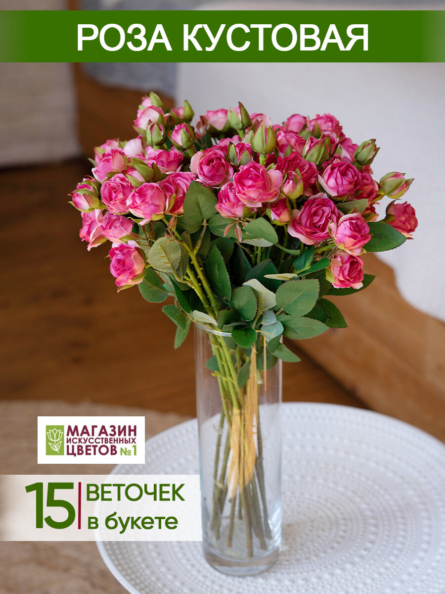 Искусственные цветы Роза кустовая, Магазин искусственных цветов №1, набор 15 шт информация: