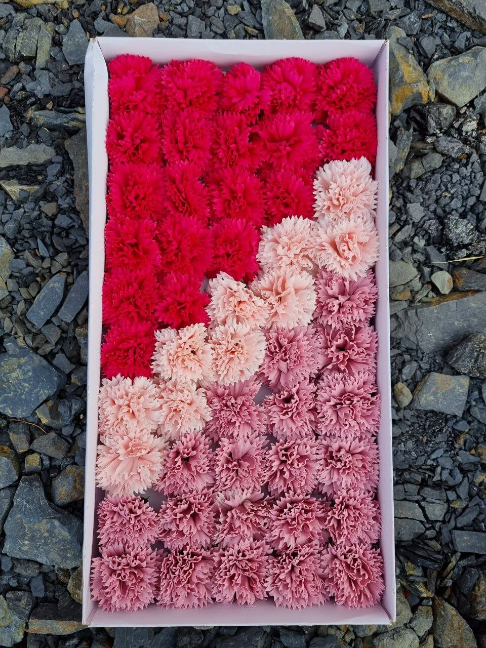Декоративные цветы. Гвоздика. Микс малиновый/светло розовый/пудра розовая. информация: