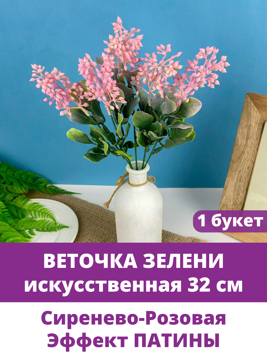 Отзывы на Искусственная зелень для декора, Сиренево-розовая, эффект Патины, Букет 32 см, 1 шт