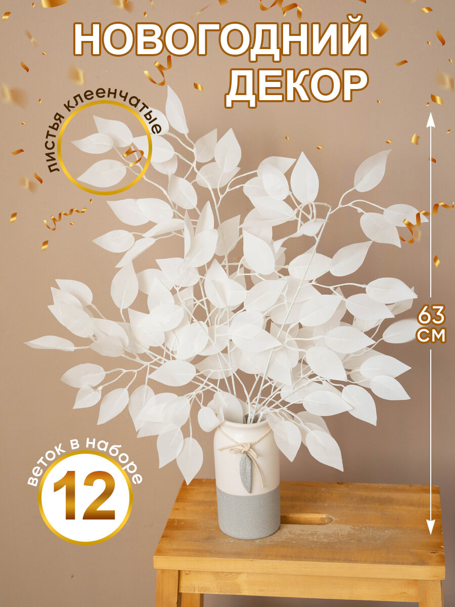 10 цен на Цветы искусcтвенные для декора, Магазин искусственных цветов №1, Набор из 12-ти веток Фикуса белый, клеенчатые