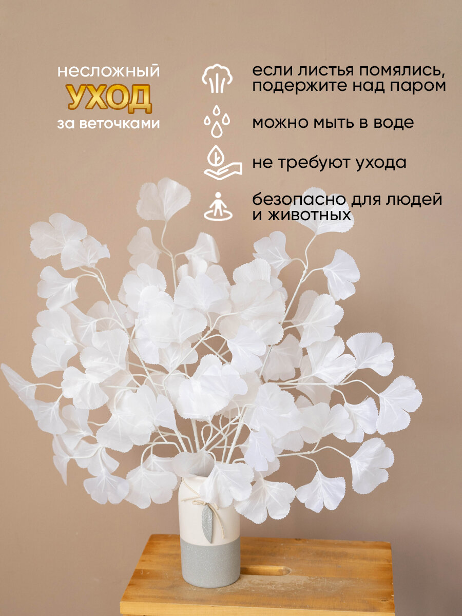10 цен на Цветы искусcтвенные для декора, Магазин искусственных цветов №1, Набор из 12-ти веток Гинкго белый, текстиль
