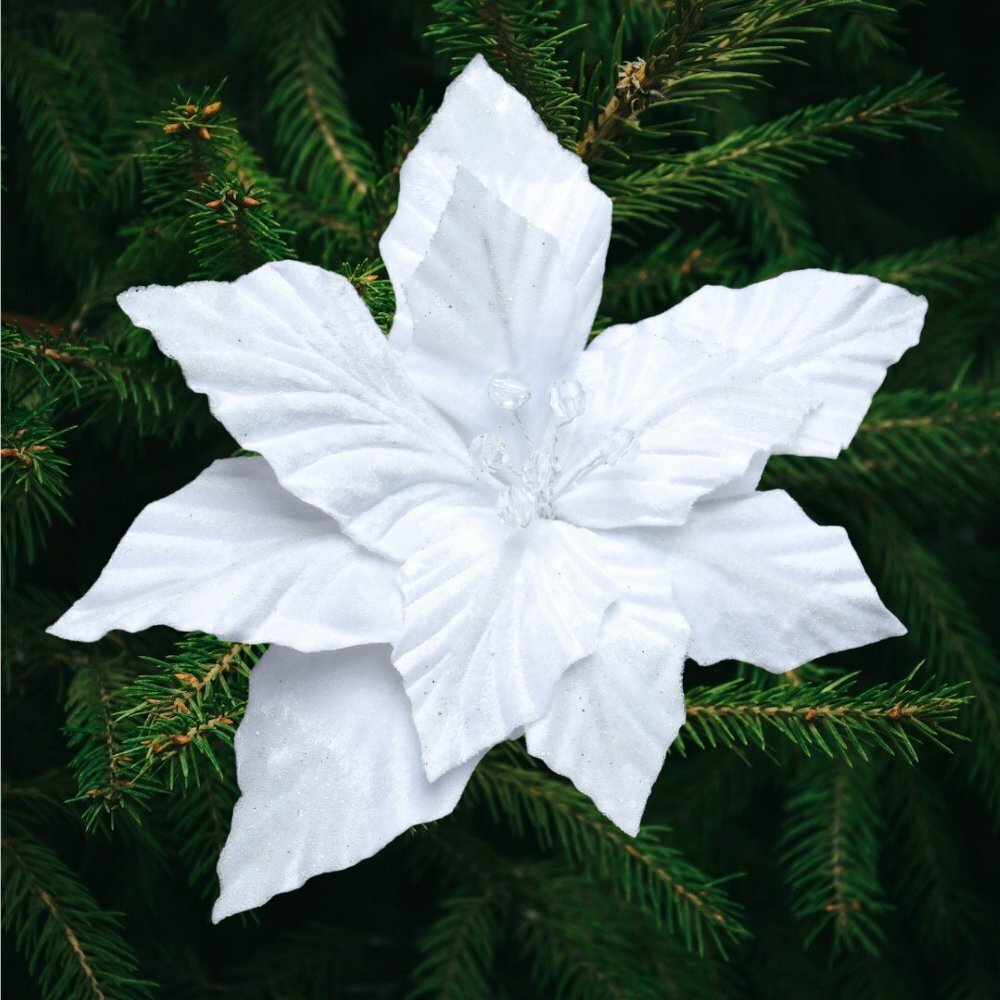 10 цен на Цветок декоративный Пуансеттия - 3 штуки / белый