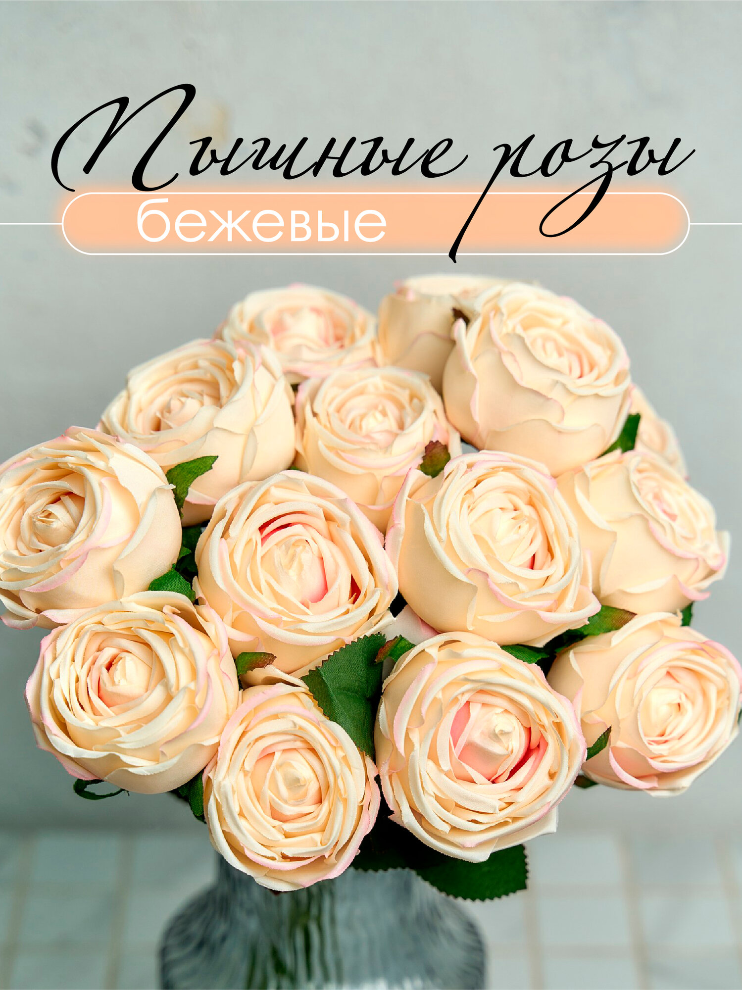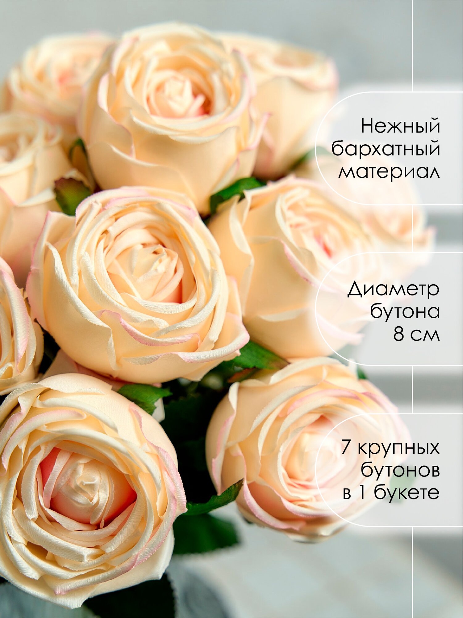 Цветы искусственные Розы 45 см. Ванильные информация:
