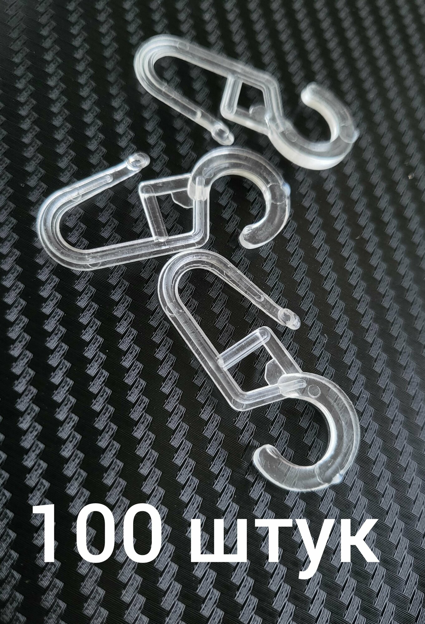 10 цен на Крючки (серьга) для кольца (диаметр 1см) для штор, тюли, портьер, блэкаут, карниза (прозрачные, 100 штук)